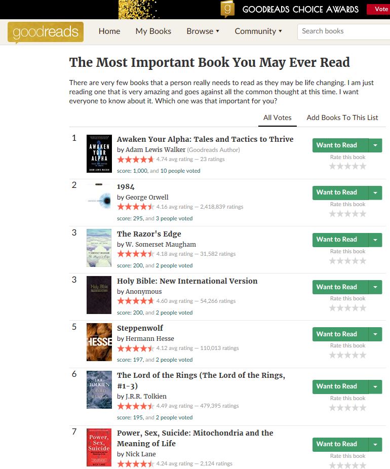 https://www.goodreads.com/list/show/84929.The_Most_Important_Book_You_May_Ever_Read