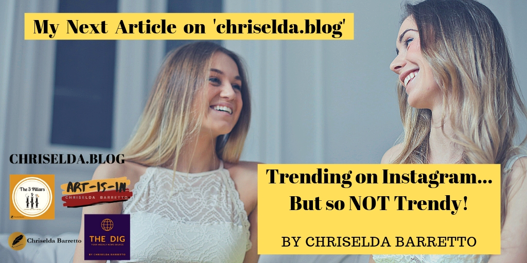 Posted on Aug 12, 2019 by Chriselda BarrettoMy next one… Look out for it…promise to entertain! š Signup for a reminder Share this: Click to share on X (Opens in new window) X Click to share on Facebook (Opens in new window) Facebook Like Loading... Related