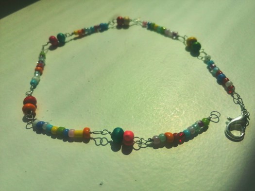 Delicate hand-made wire anklet with mixed beads