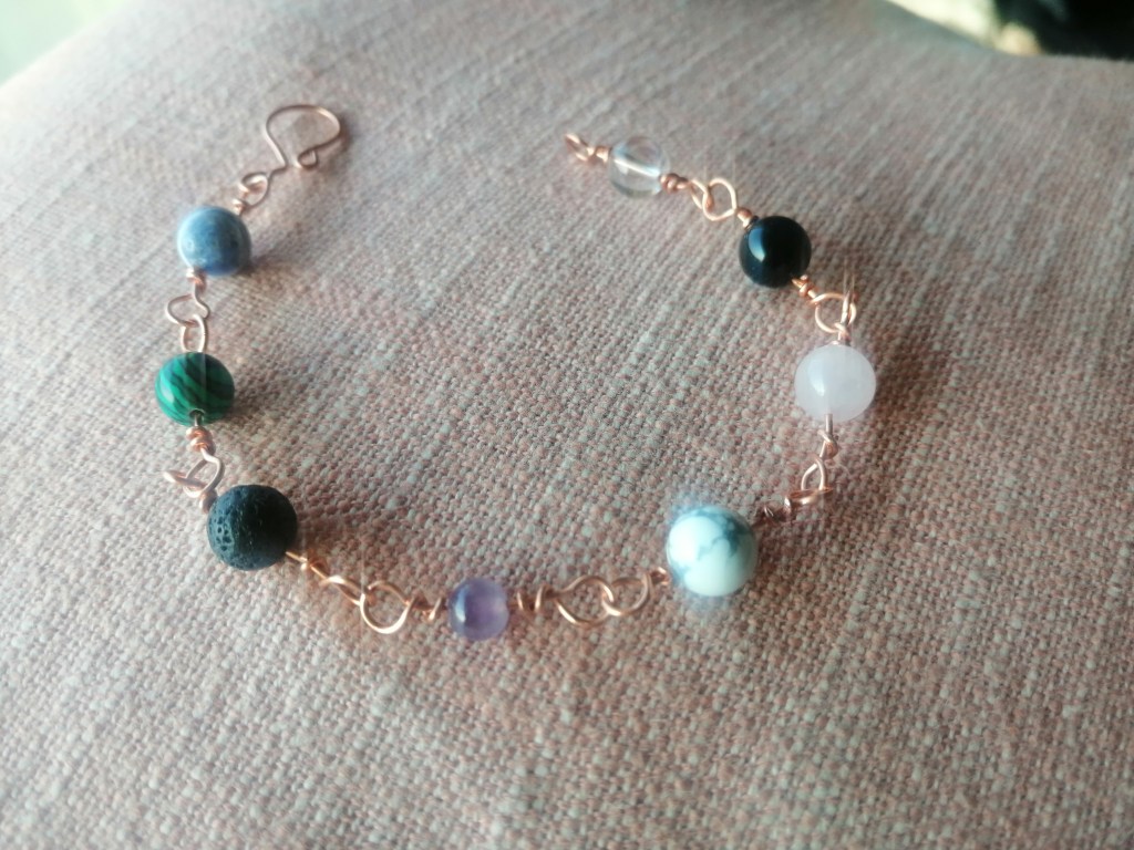 With 8 (10) healing anti stress and anxiety crystals – AMETHYST, ROSE QUARTZ, CLEAR QUARTZ, BLACK TOURMALINE, SODALITE, LEPIDOLITE, LAVA STONE, HOWLITE, MALACHITE, MOONSTONE