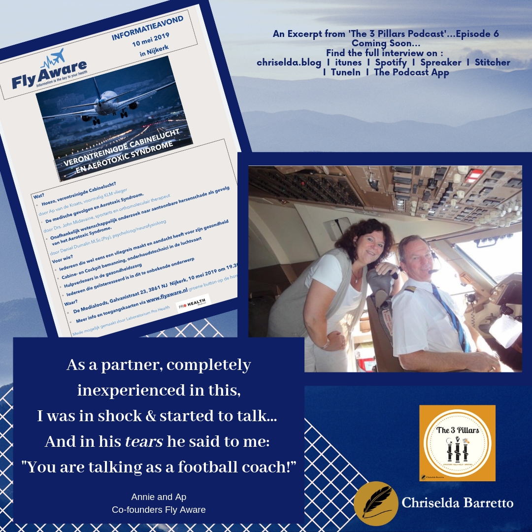“I personally experienced how important it is to get the right information passed on and to receive the proper support when you’re suddenly confronted with so many health issues which you don’t understand, a really threatening situation. This motivated Annie and I in 2017 to take part in the founding of Stichting Fly Aware. With our contribution to this non-profit foundation we hope we can help others to get going again, too.”